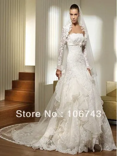 Get free shipping bridal lace bolero jacket custom lace white/ivory bolero long sleeve Layered ball gow