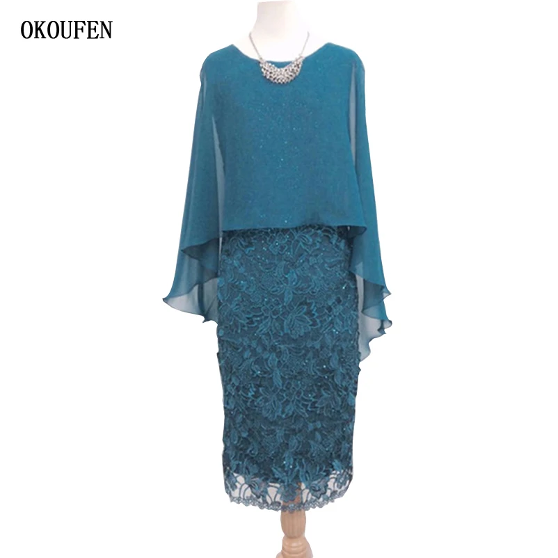 Special Product OKOUFEN Mother Of The Bride/Groom Dresses 2019 Capelet Chiffon Lace Hunter Wedding Party Gown kurti