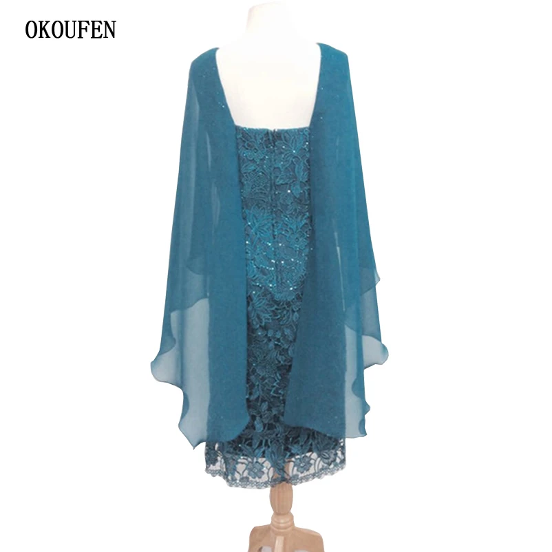 Best OKOUFEN Mother Of The Bride/Groom Dresses 2019 Capelet Chiffon Lace Hunter Wedding Party Gown kurti