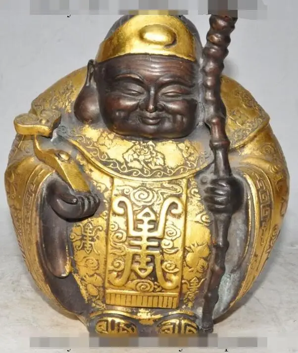Home » best price , best seller , mother product » Buy S01282 9"chinese Bronze gilt Longevity Shou-po mother-in-law Hold Ru Yi Crutch Statue B0403