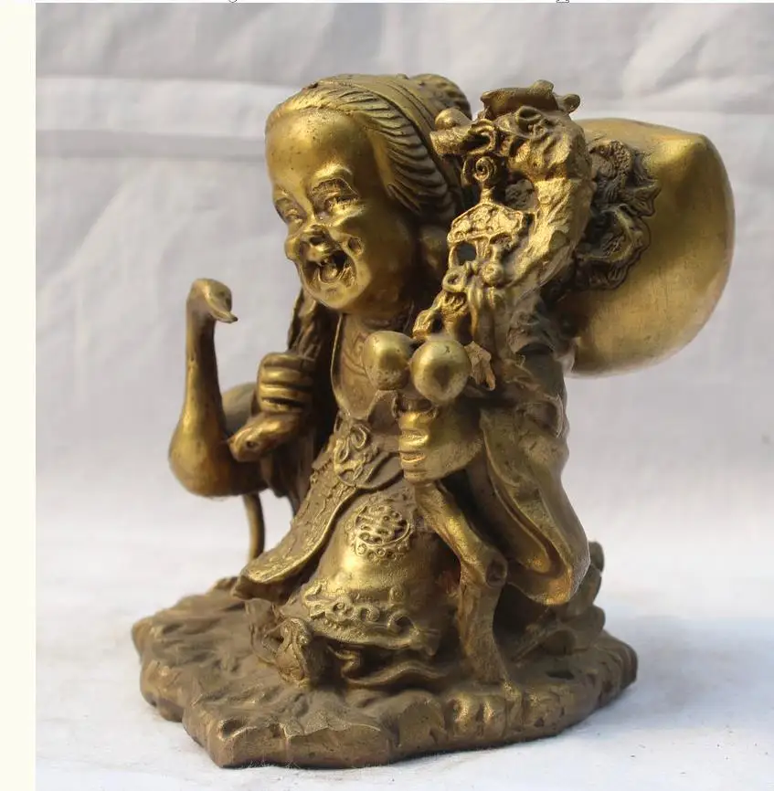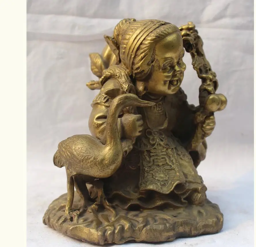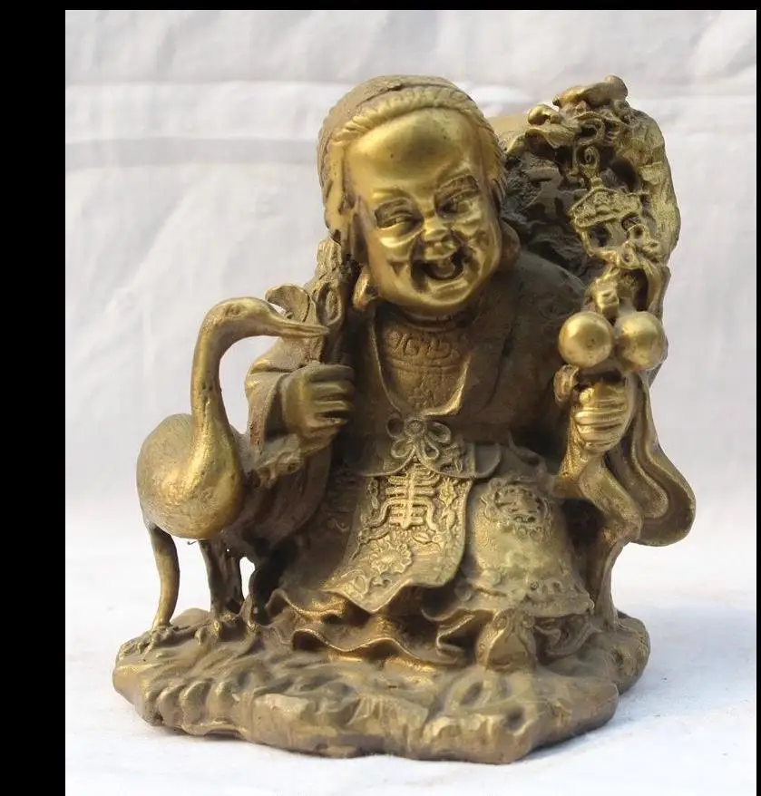 Home » best price , best seller , mother product » Cheap 671115650+++6" China Chinese Fengshui Brass Fu Peach Crane longevity mother-in-law Statue