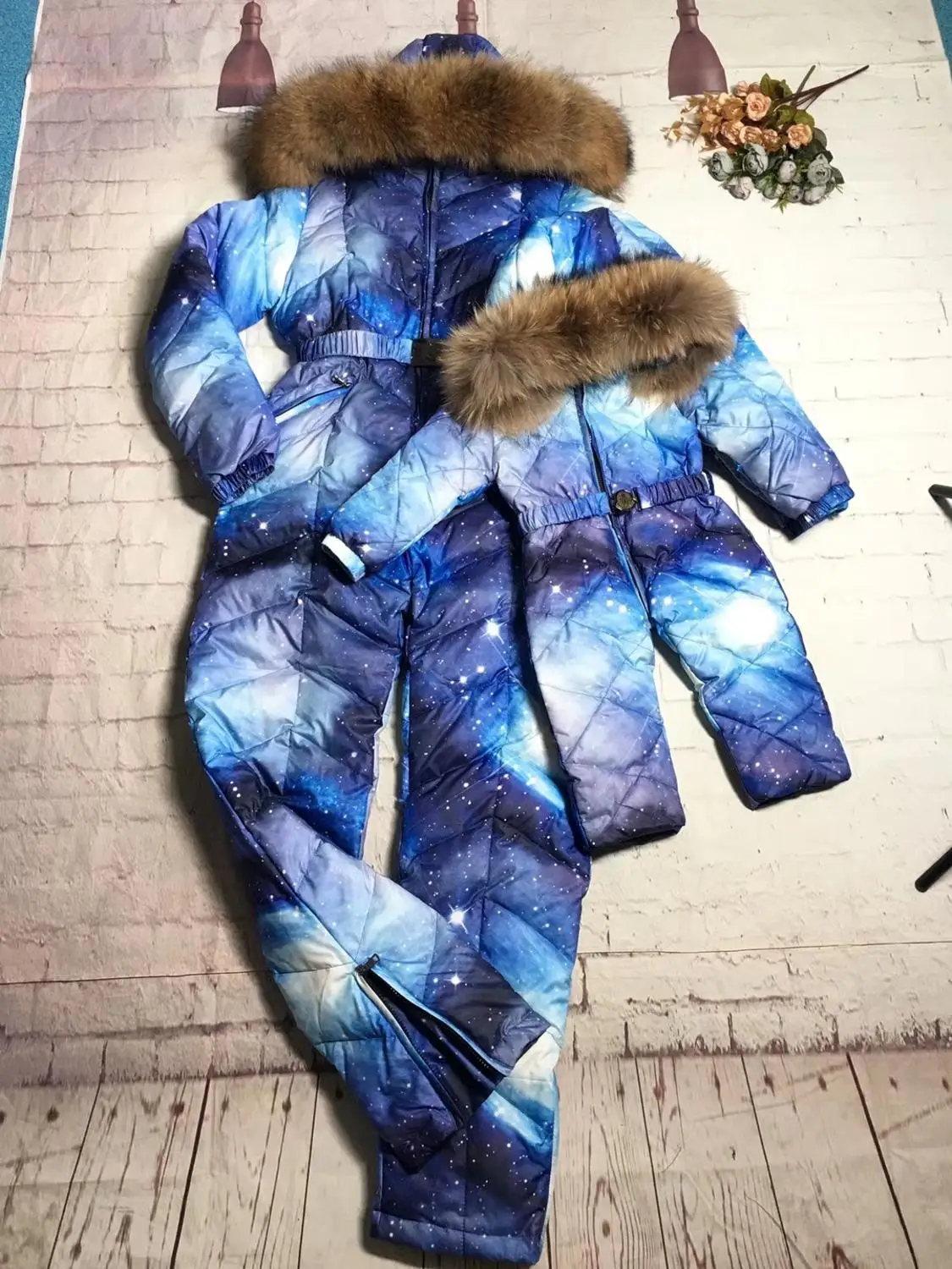 Hot Product Family sets 2019 winter Outwear suit Family set monther and child raccoon fur hooded jumpsuit Women