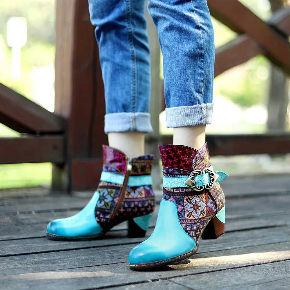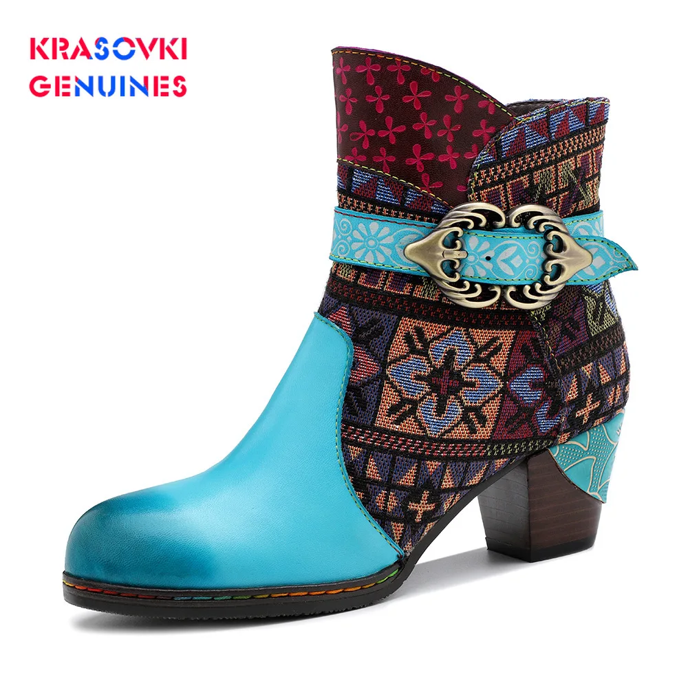 Promo Ladies Genuine Leather Retro Floral Casual Platform Boots Mother Flower Lace Flat Snow Boots Autumn