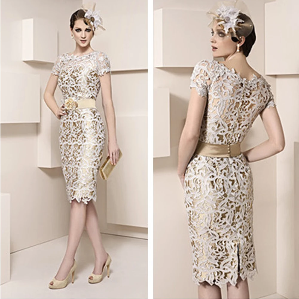 Get vestido mae da noiva Gorgeous Short Knee Length Mother Dresses 2020 Sheath Lace Appliques Wedding M