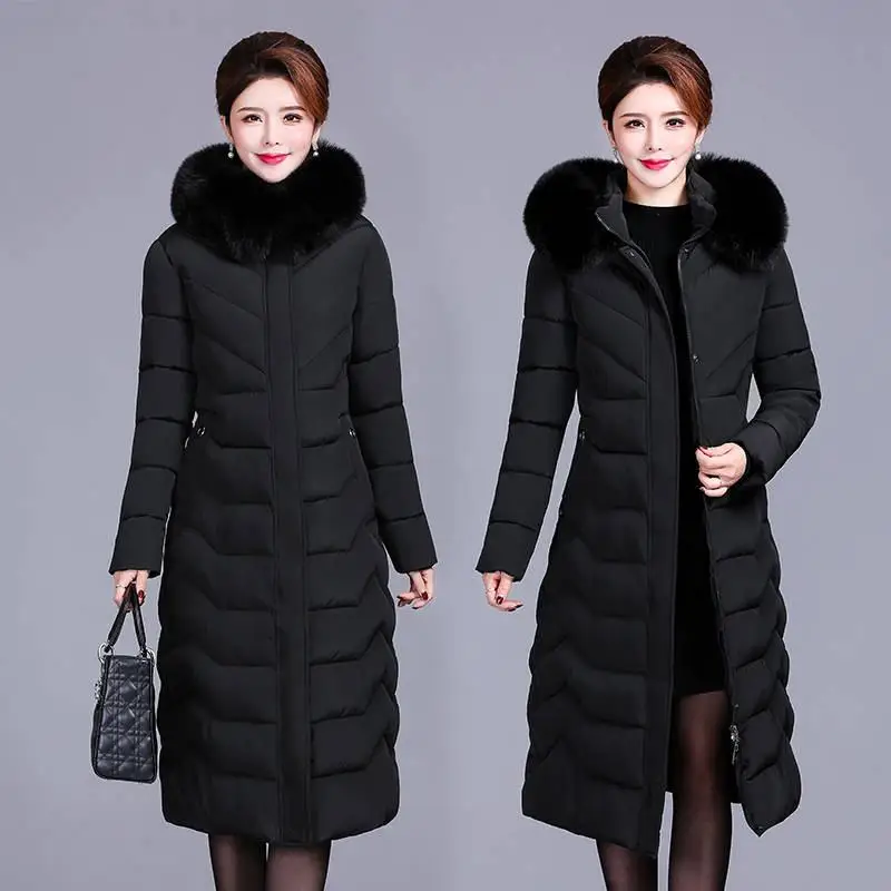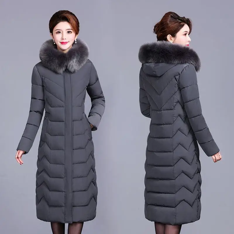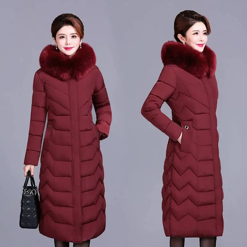 Get Women Winter Hooded Slim Cotton Padded Coat Mother Thick Warm Down Cotton Long Overcoat Plus Size 6