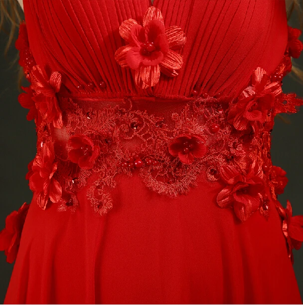 Special party flowers v-neck vestido de renda 2018 new women Formal red chiffon long evening gown elegant M