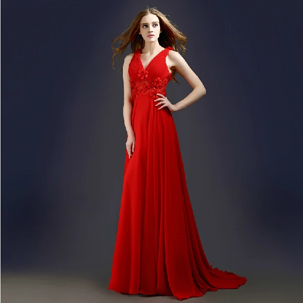 Hot Product party flowers v-neck vestido de renda 2018 new women Formal red chiffon long evening gown elegant M