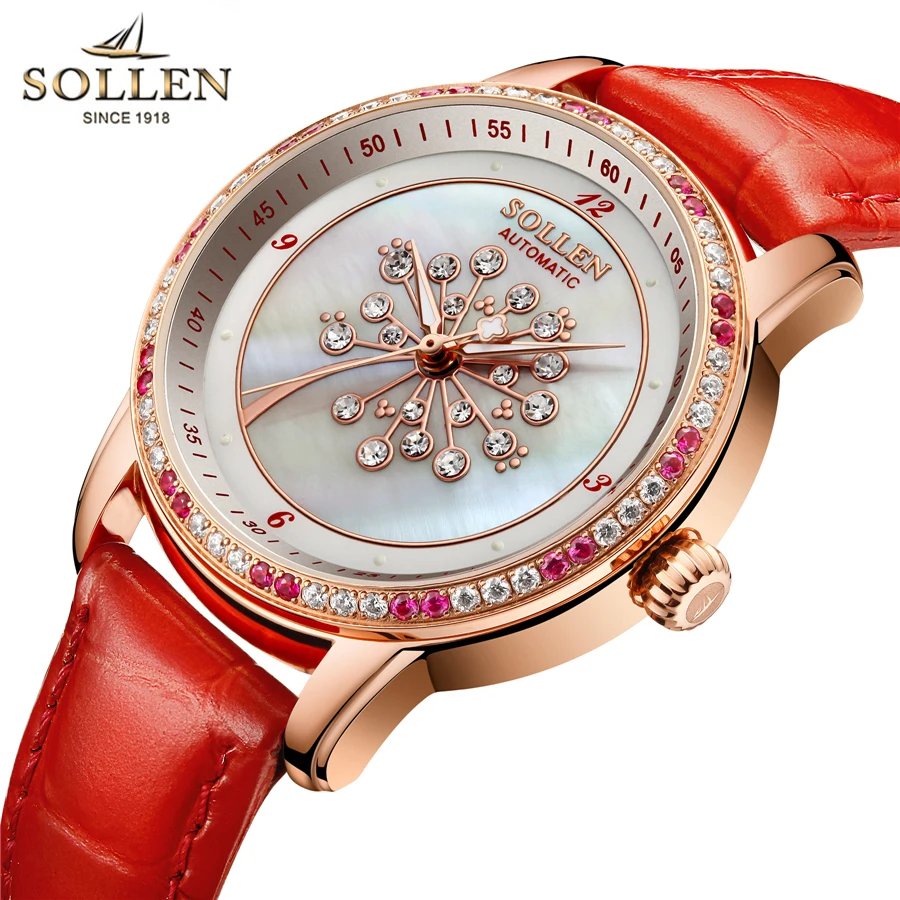 Hot Product SOLLEN Women Watches Luxury Brand Ladies Automatic Mechanical Watch Women Diamond Mother Pearl Dial