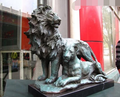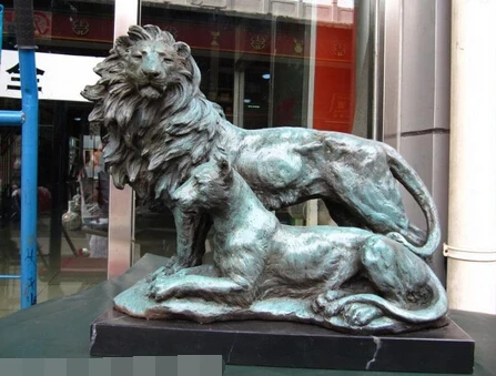 Buy 007744 17"Large Pure Bronze Copper & Marble Mother Lion Art sculpture statue