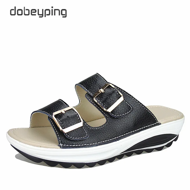 Special 2017 Casual Women'S Sandals Genuine Leather Summer Flats Shoes Women Platform Wedges Female Slides