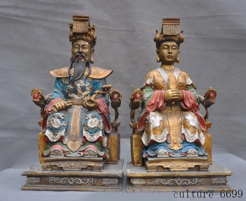 Home » best price , best seller , mother product » New christmas Chinese bronze Gilt Painted Myths Queen Mother Jade Emperor Couples Statue Pair halloween