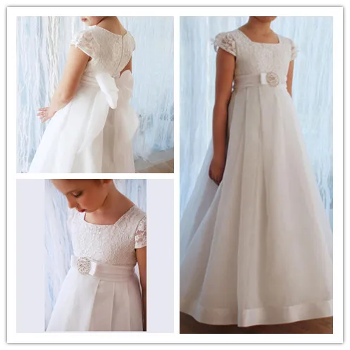 New A Line Kids New Arrival Short Sleeve Lace Flower Girl Dresses Vestido de Party Birthday First Commu