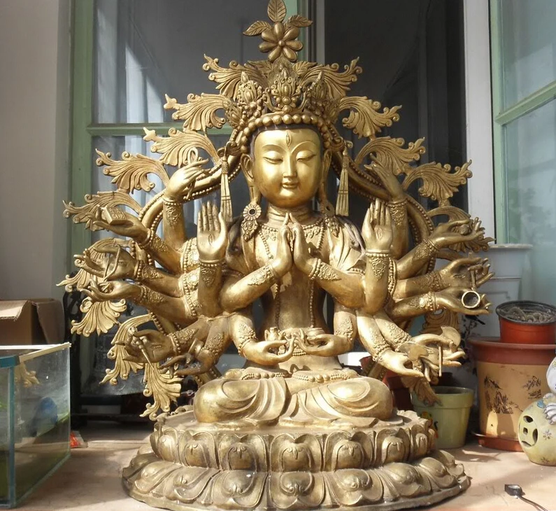 Promo 150610 S1513 38" Tibet Tibetan Bronze Gilt 18 Arm Maha Cundi Bodhisattva Mother Buddha Statue