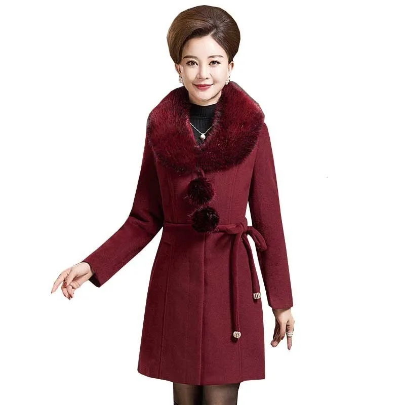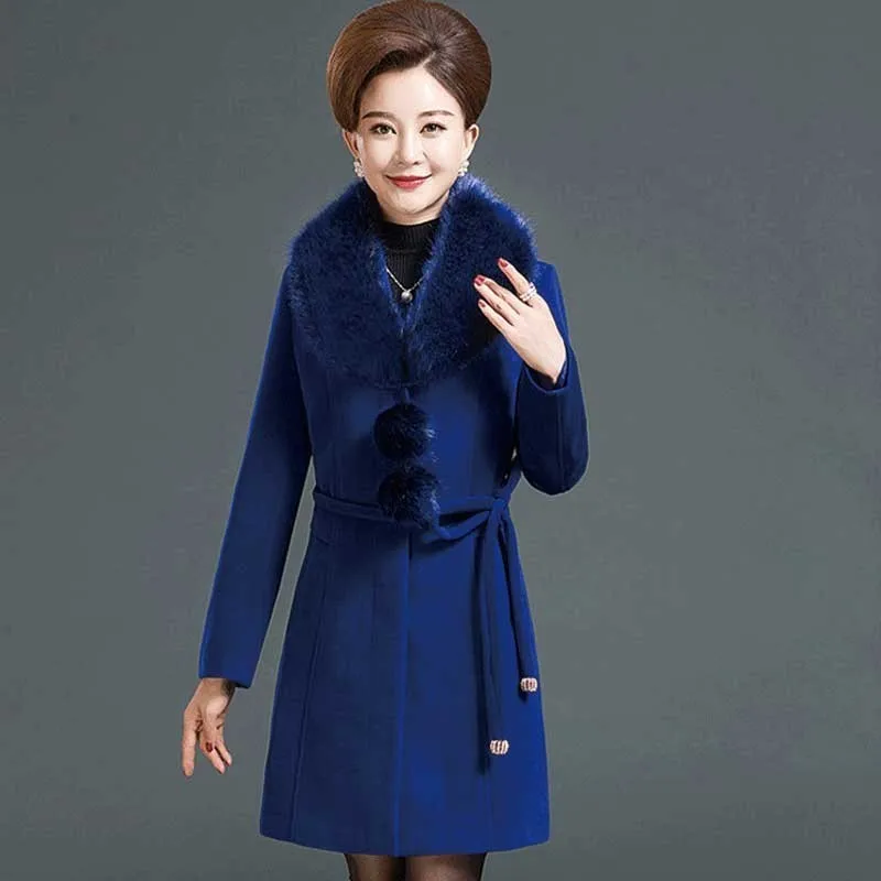 Discount Gifts For Mothers Winter Woolen Coat Women Warm Dark Buckle Large Fur Collar Long Wool Overcoat Thi