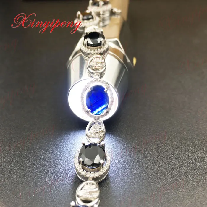 Hot Product 925 sterling silver with 100% natural Sapphire bracelet Fashion jewelry Mother a gift Blue gems