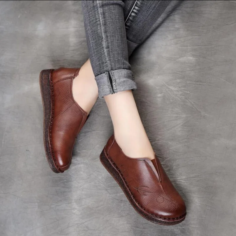 New Autumn winter new vintage embossed Genuine Leather flats shoes pregnant women comfortable Loafers m