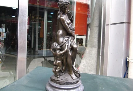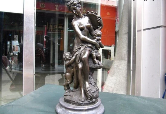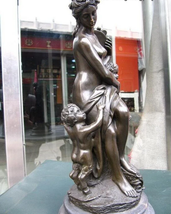 Special Product Collectible bronze lion statue S0178 13"Western Pure Bronze Copper nude woman mother with Two Boys