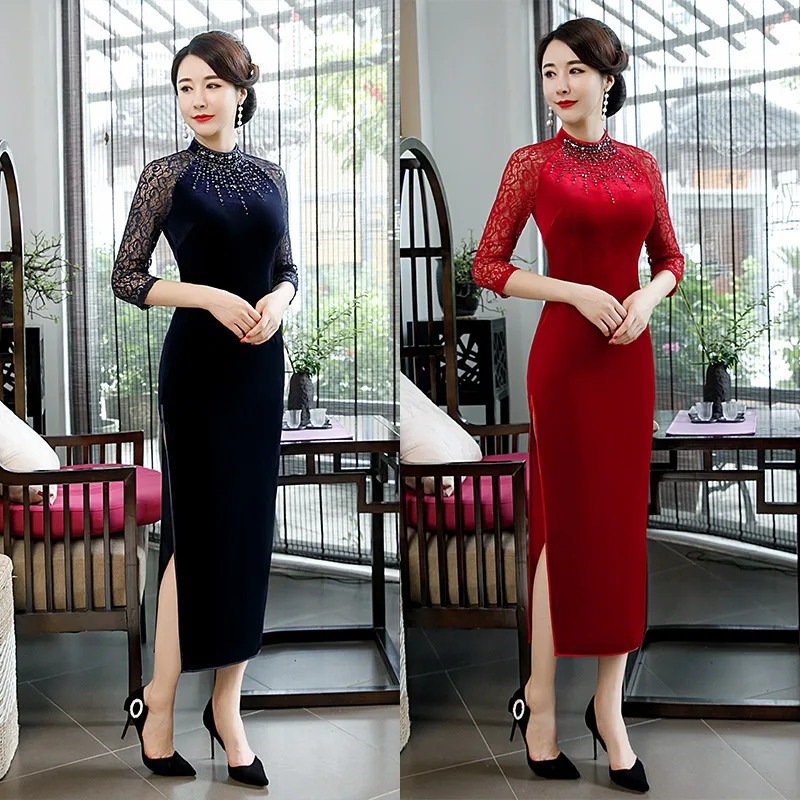 Special FZSLCYIYI Vintage Velvet Qipao Women Velour Cheongsam Chinese Style Vestidos Sexy Bride Mother Wedd