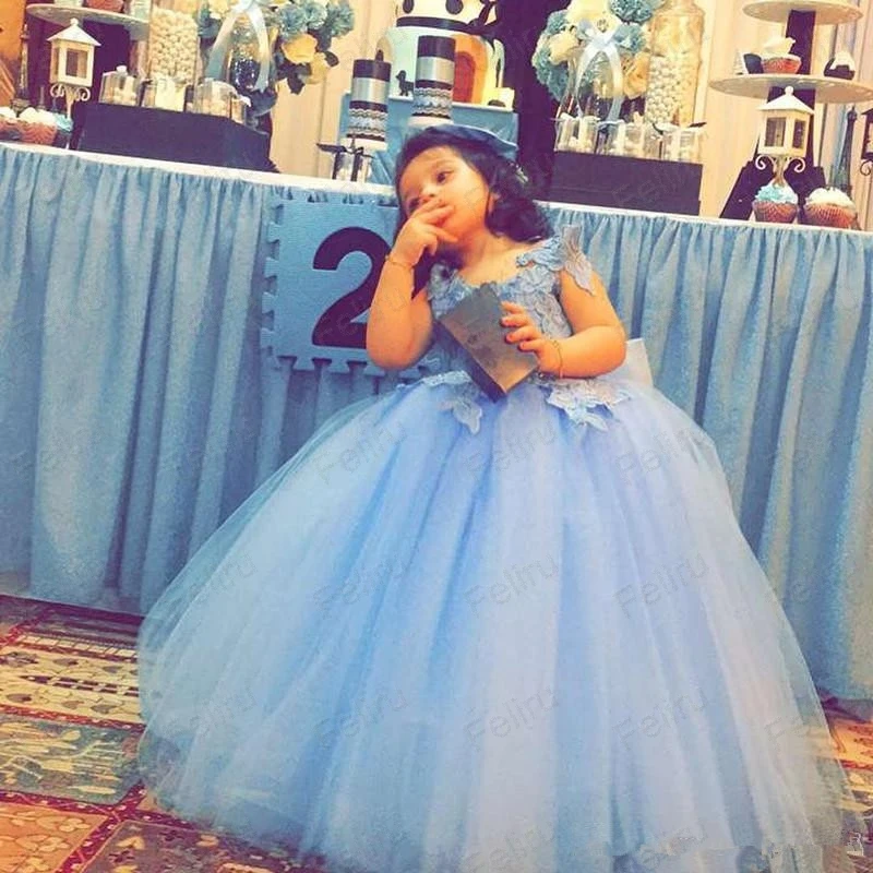 Special Product Hot Sale Lace Applique Tulle Puffy Flower Girls' Dresses Capped Sleeves Long Floor Pageant Party We