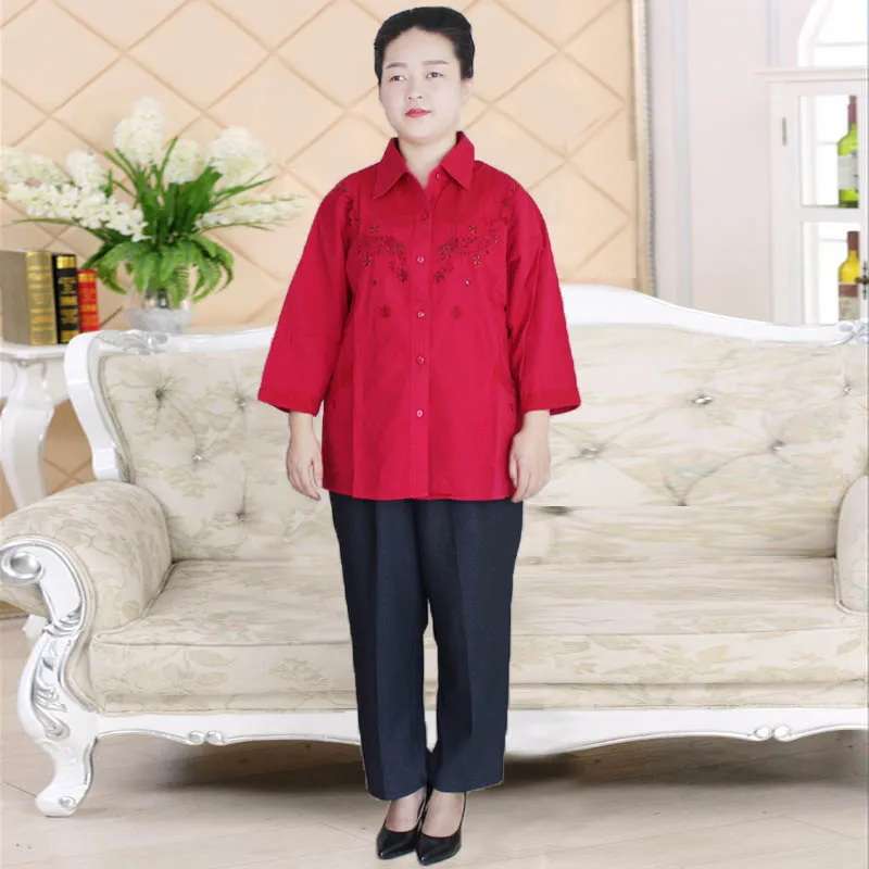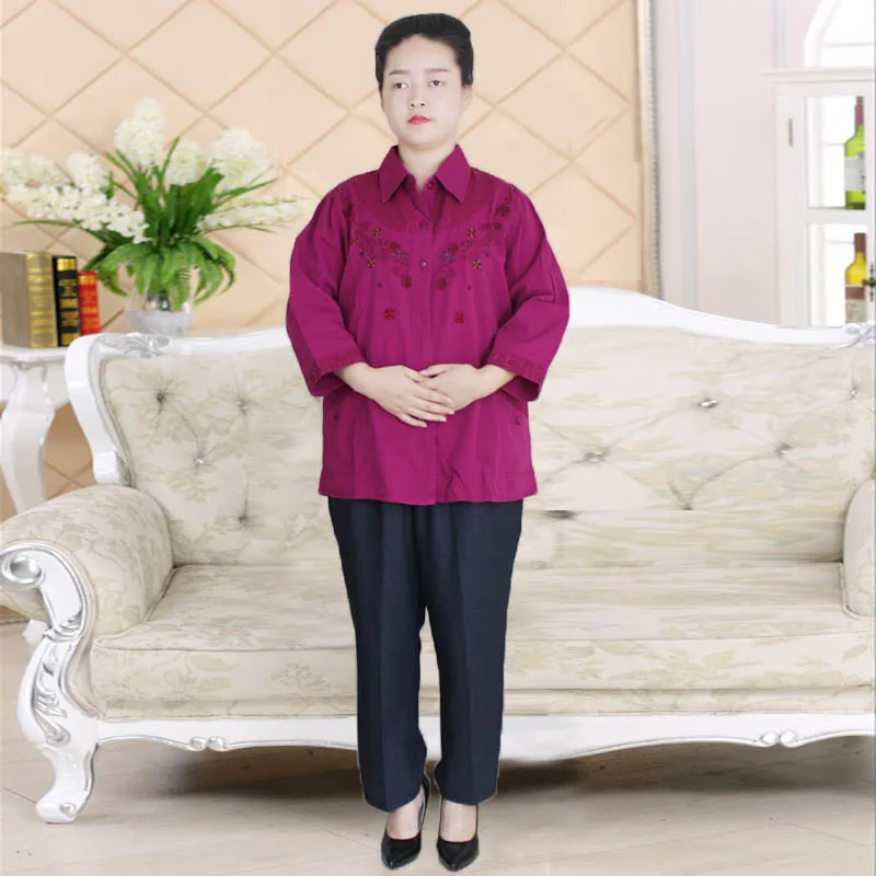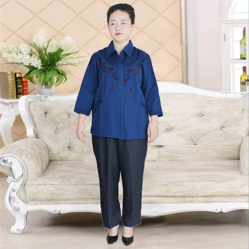 Buy Middle-aged cardigan cotton embroidered shirt + casual increase mother thin pants SR6-C11+S8YHK